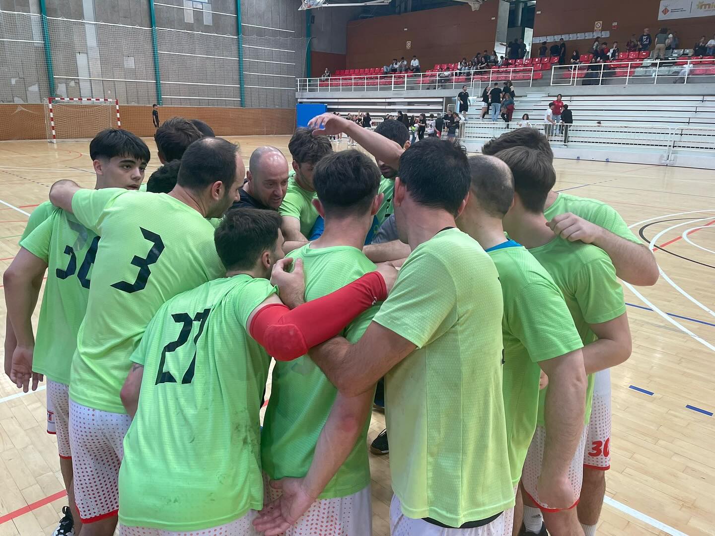 La segona part un equip local nerviòs que no esperava aquest “tu a tu” perdia pilotes i els nostres jugadors aprofitaven per augmentar lo ritme i treure allò que tenen amagat per les grans ocasions, igualant el partit al minut 38 i arribant a un 27-27. La tensió a la pista i al banc era evident, i a falta de pocs segons pel final i amb la possibilitat d’empatar una altra percepció del reglament complexa dels àrbitres ens treien la opció d’un últim atac, arribant al final amb un 36-35.